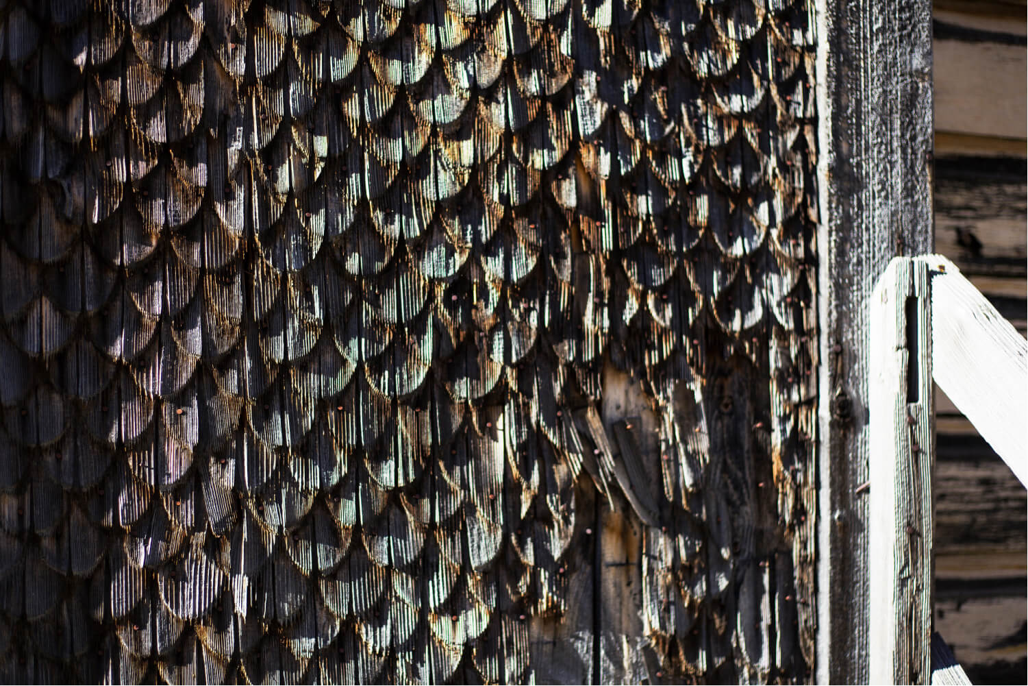 For example, the decoration of the facades of new or renovated houses imitates wooden scales on old houses.