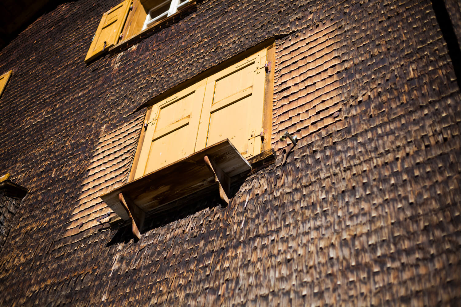Wooden roof shingles are made in the Alps, which can be seen in almost every canton. Choosing the right wood, splitting it finely, and cutting each shingle at the right angle requires a special talent. There are only about ten masters of the craft left in western Switzerland.