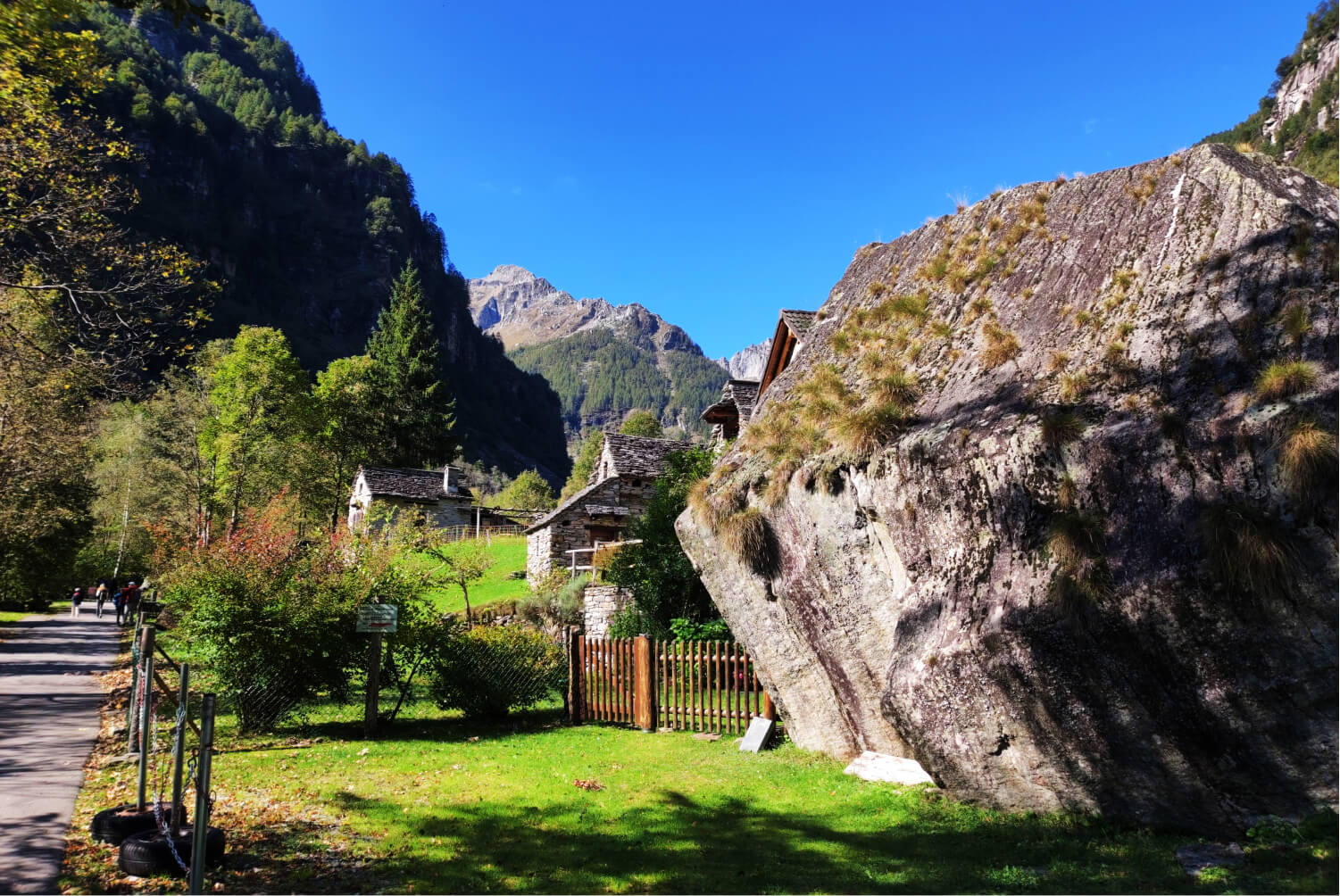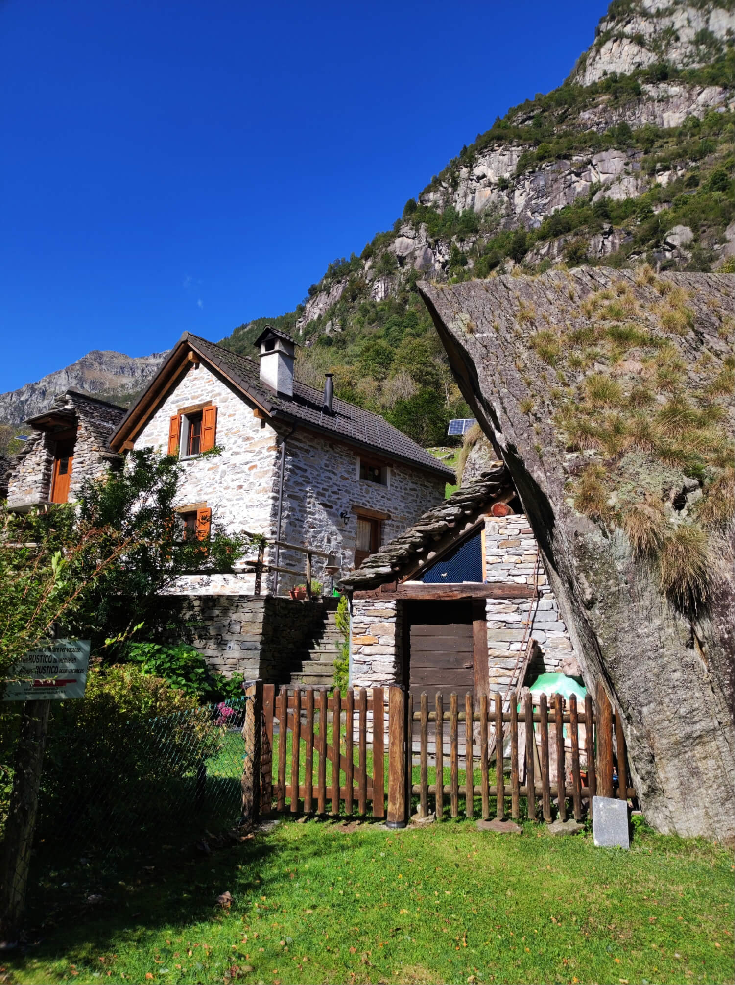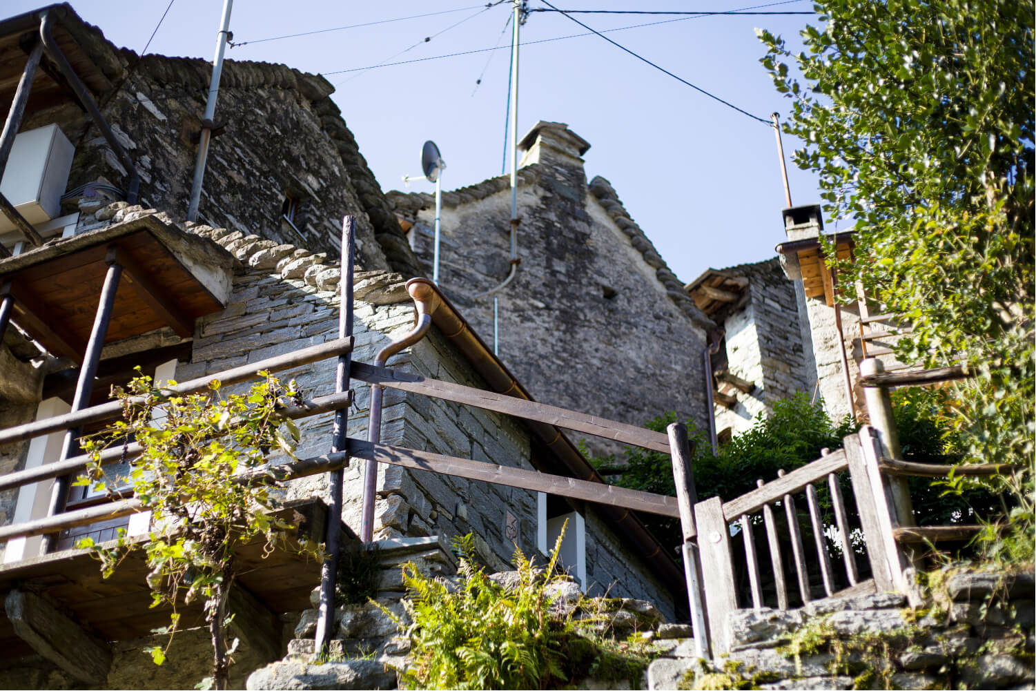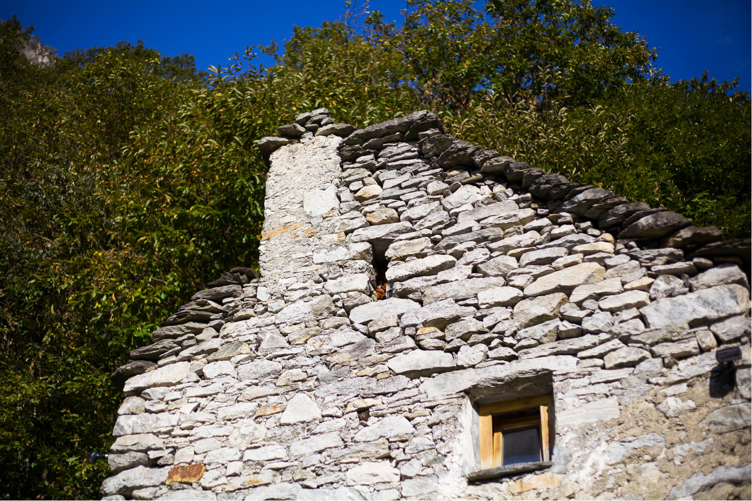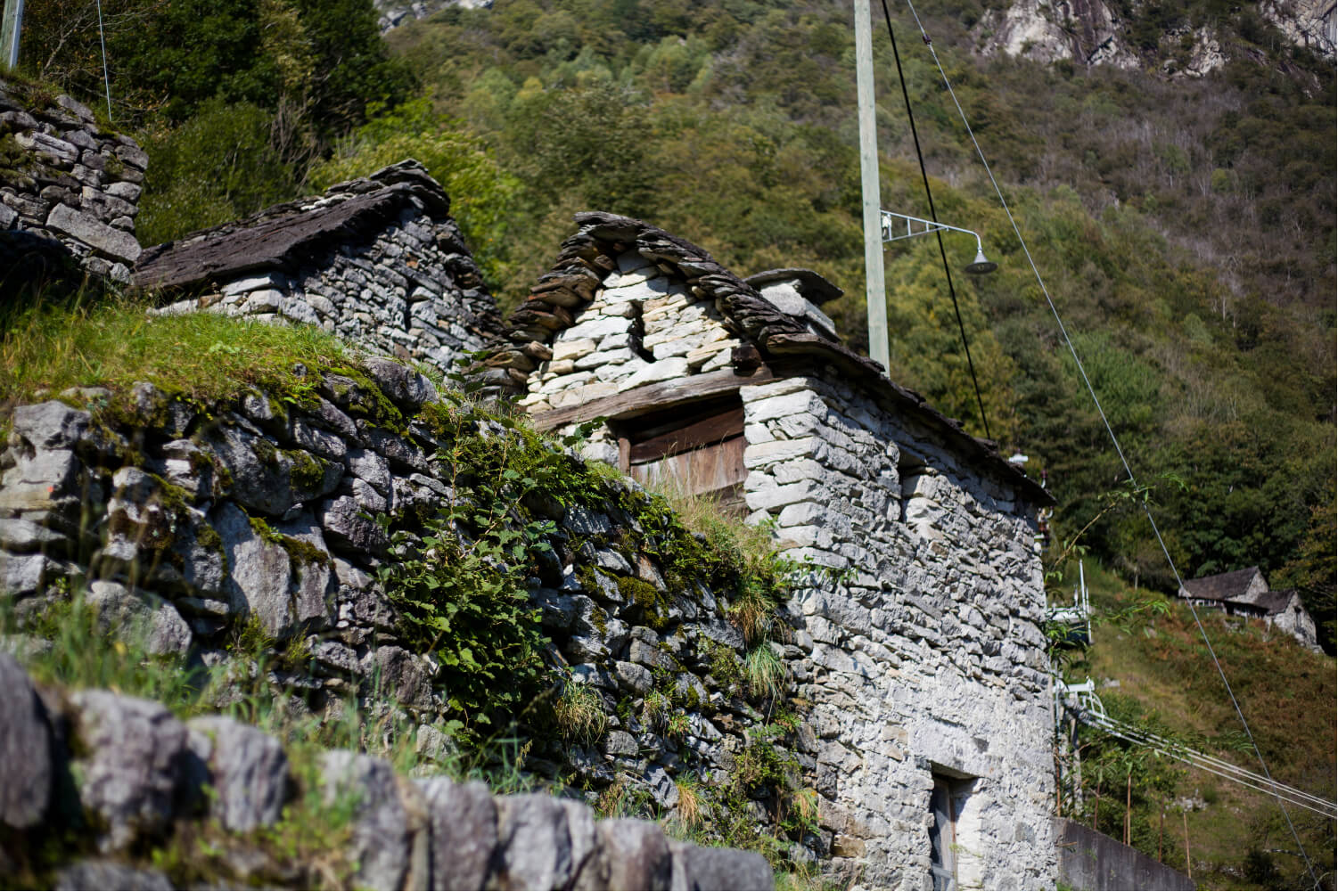 Sometimes massive granite stones (the most common building material in Ticino) are used unworked: in the village of Sonogno, for example, a boulder was not broken into small stones, but a house was simply built next to it.