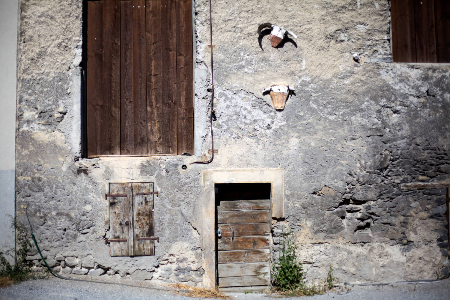 Old houses in Switzerland are often objects of cultural heritage, which makes it difficult to modernize them. But that does not stop them from being used for their intended purpose — livestock, farm machinery, hay.